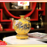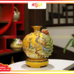 Mỗi họa tiết trên bình hút lộc cao cấp đều được chăm chút tỉ mỉ, đường nét sắc sảo, lớp vàng ánh kim nổi bật trên nền men sang trọng, tạo nên điểm nhấn đẳng cấp cho không gian trưng bày. Phần miệng loe – thân phình – đáy thu nhỏ đúng chuẩn phong thủy, giúp hút tài lộc vào và giữ lộc ở lại.